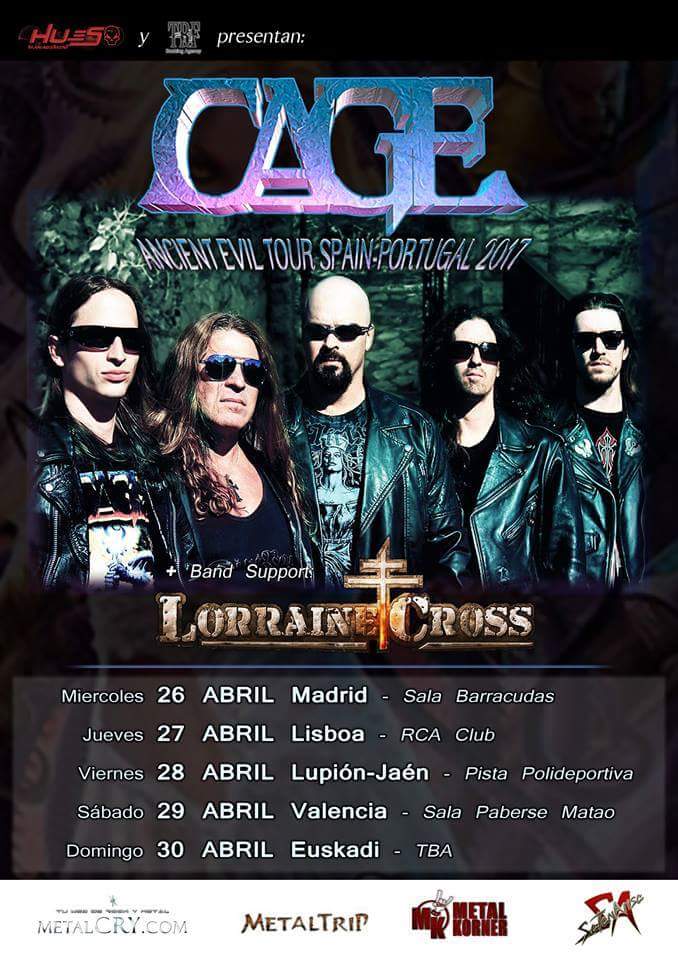 La banda americana Cage han anunciado los siguientes conciertos en España donde estarán acompañados por los franceses Lorraine Cross