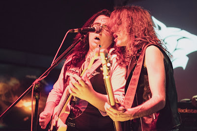 Con todo preparado, salieron directamente a por todas con Ready To Strike, tema que formará parte de su primer trabajo el cual anunciaron que ya tienen grabado y que pronto podrán dar noticias de él. Rápidamente la enlazaron con The Shark, canción dedicada a la figura de Mark Shelton, líder de Manilla Road que desgraciadamente nos dejó el pasado año y de cuya banda se notan algunas de sus influencias.